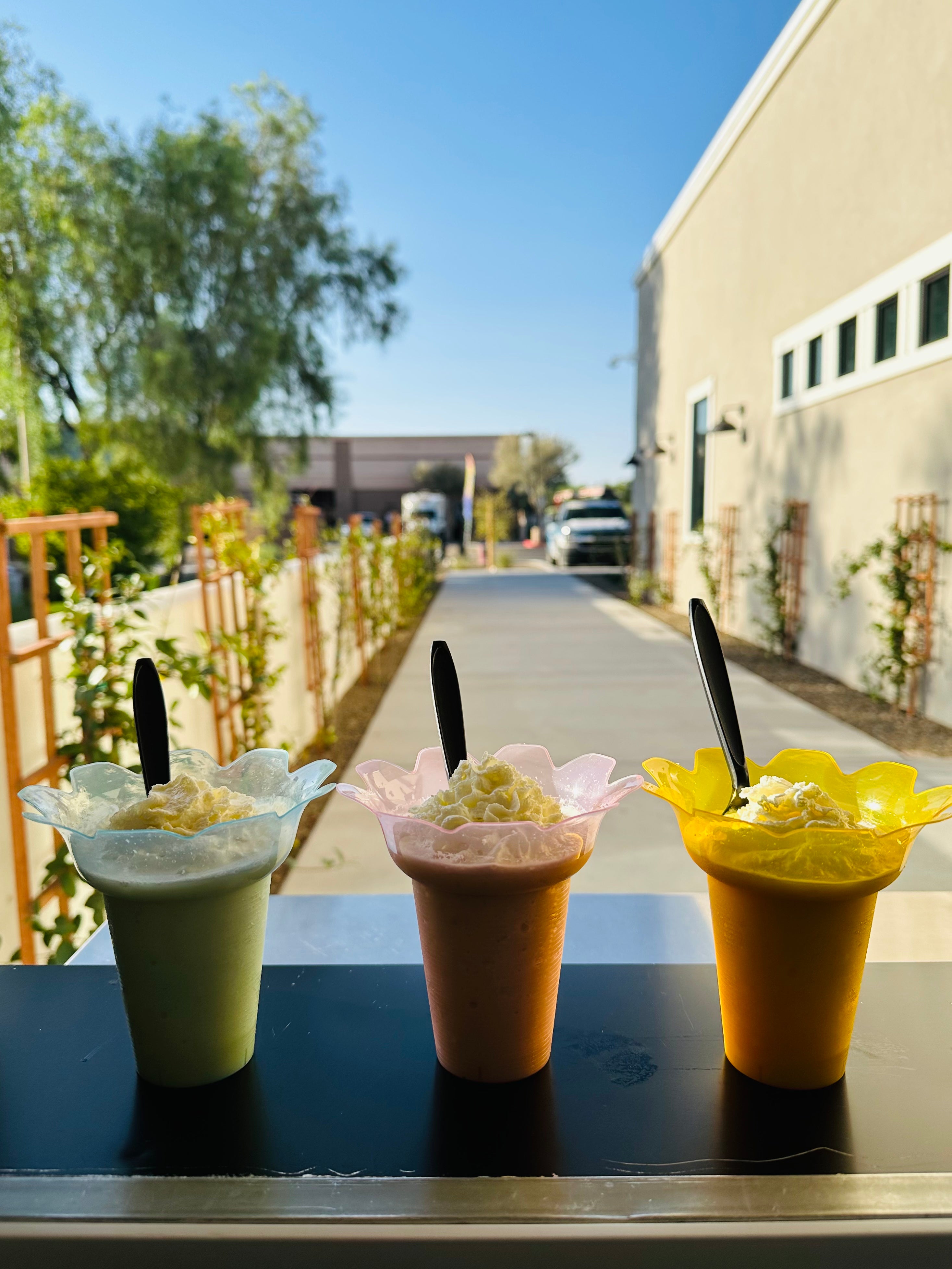 Our signature fizzy ice is a collection of snow, sugar-free soda, whip cream, and snow cone syrup. Come and enjoy one of our drinks or treats today!